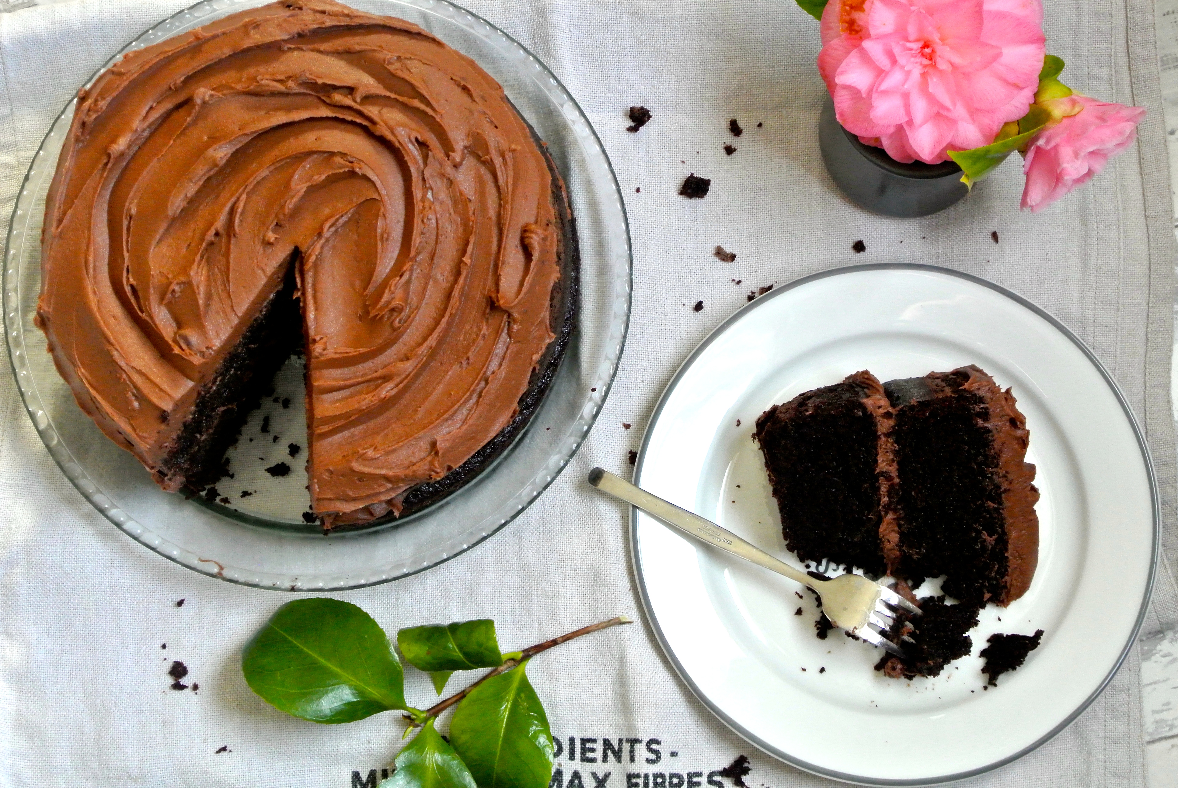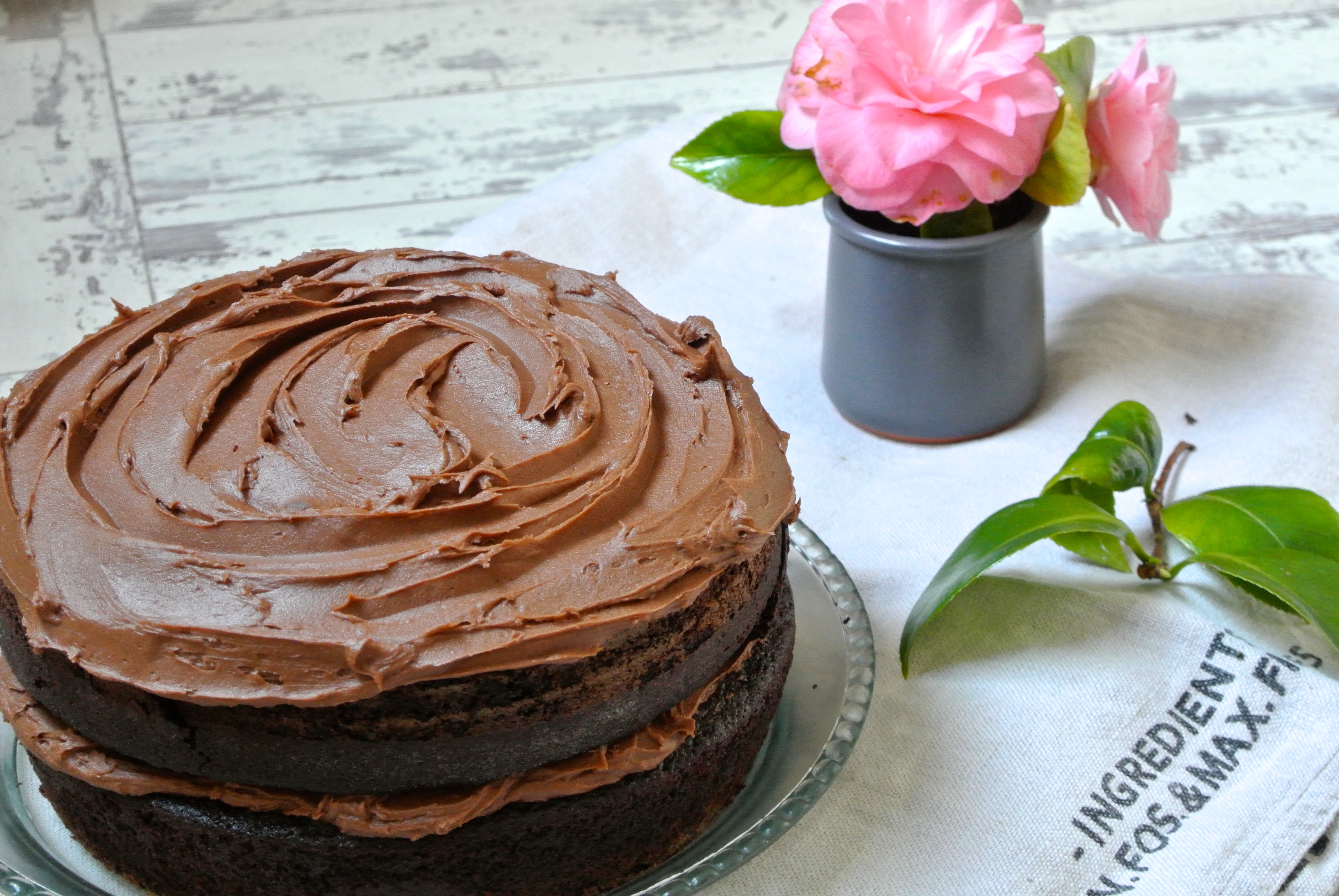 Oh look, I baked my own cake for Mother’s Day! My daughter’s not 6 yet, so she can’t be trusted around chocolate. And I really, really fancied decadent chocolate cake, topped with even more decadent chocolate buttercream. I bastardised goddess Ina Garten’s Beatty’s Chocolate Cake featured in Barefoot Contessa, tweaking quantities of ingredients, most notably on coffee, to make it more child-friendly. Mimi may not have had a hand in making the cake, but big did she sample it. Amply.